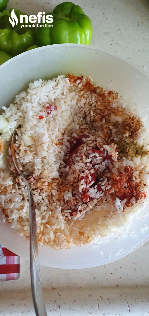 - Her biber için bir kaşık pirinç (biraz bulgur karışık yapabilirsiniz)