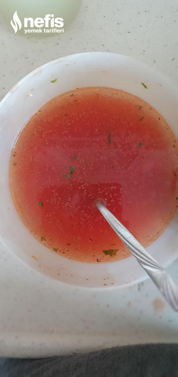- Tenceremize dizip üzerine salçalı su yapıyoruz, üzerine geçer geçmez salçalı suyu ekliyoruz.