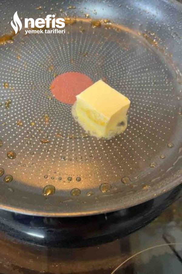 4. Aynı tavanın içine bir yemek kaşığı tereyağ ekleyin, üzerine yemeklik doğranmış soğan ve rendelenmiş sarımsakları ekleyip kavurun .