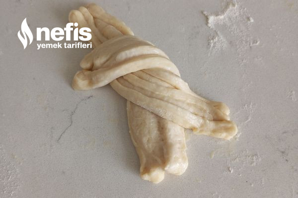 - Güzelce yoğurduğumuz hamurun streç sineması üzerini kapatıp 45 dakika mayalanmaya bırakalım.