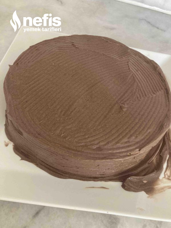 - Tüm katlar tamamlandığında en üste ve yanlara da kapatacak halde görselini paylaştığım spatula ile biçim verdim ve fazla kremayı tekrar kullanmak için dondurucuya attım.