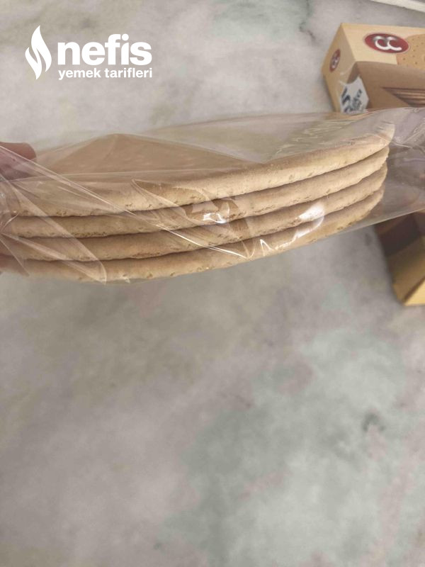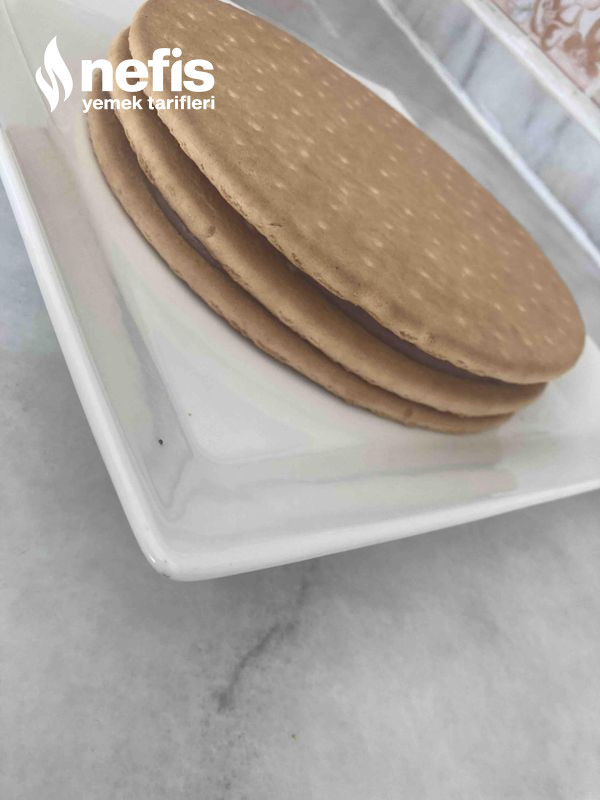 - İlk bisküviyi alarak sırasıyla ortasına yanlarını bastırdığımızda yayılacağı için 2 yemek kaşığı kremayla katları oluşturuyoruz.