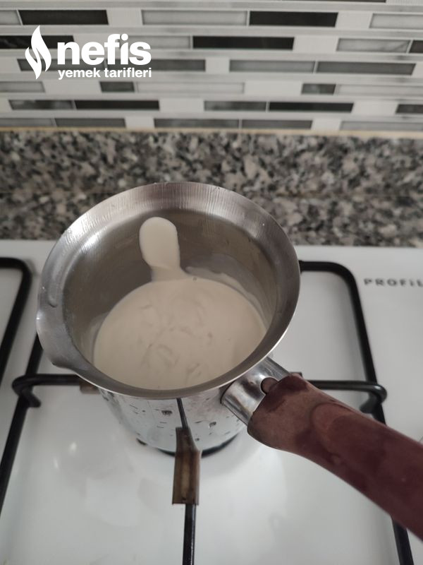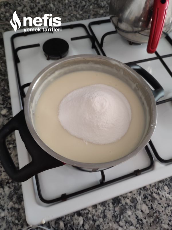 - Ocağın altını kapatınca toz kremşantiyi ekleyelim güzelce pürüzsüz olana kadar karıştıralım.