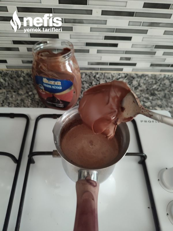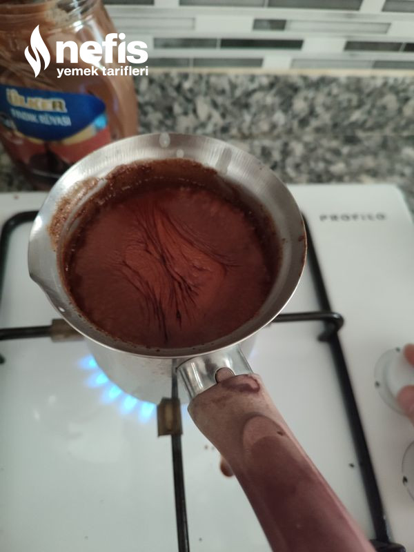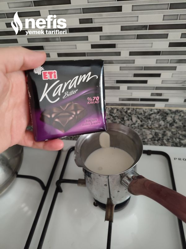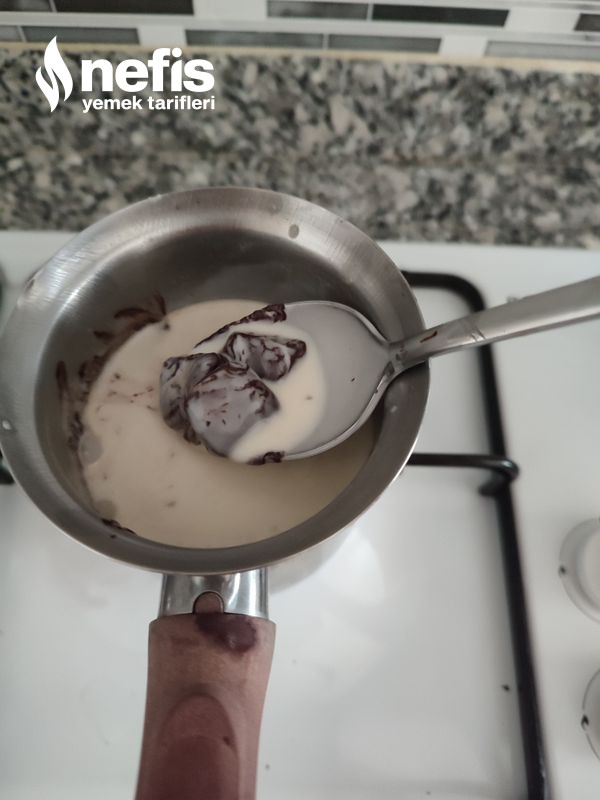- En üst katmanına da kremayı ve az ölçüde sütümüzü çikolatalar ile kaynatalım, hepsine eşit bi ölçüde dökelim afiyet olsun 😋.