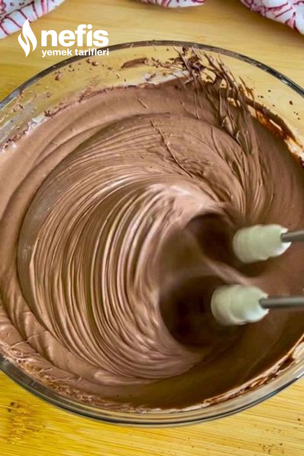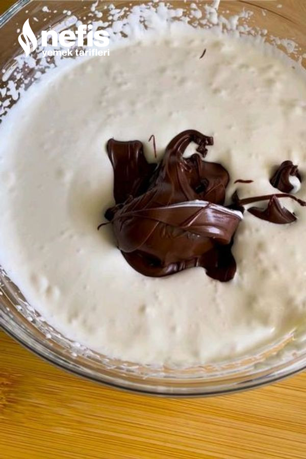 - Uygun bir kaba sıvı krema alalım ve üzerine nutella ve kakao eklenir ve mikser ile homojen bir kıvam alana kadar çırpalım ve buzdolabına alalım soğuması için bekletelim.