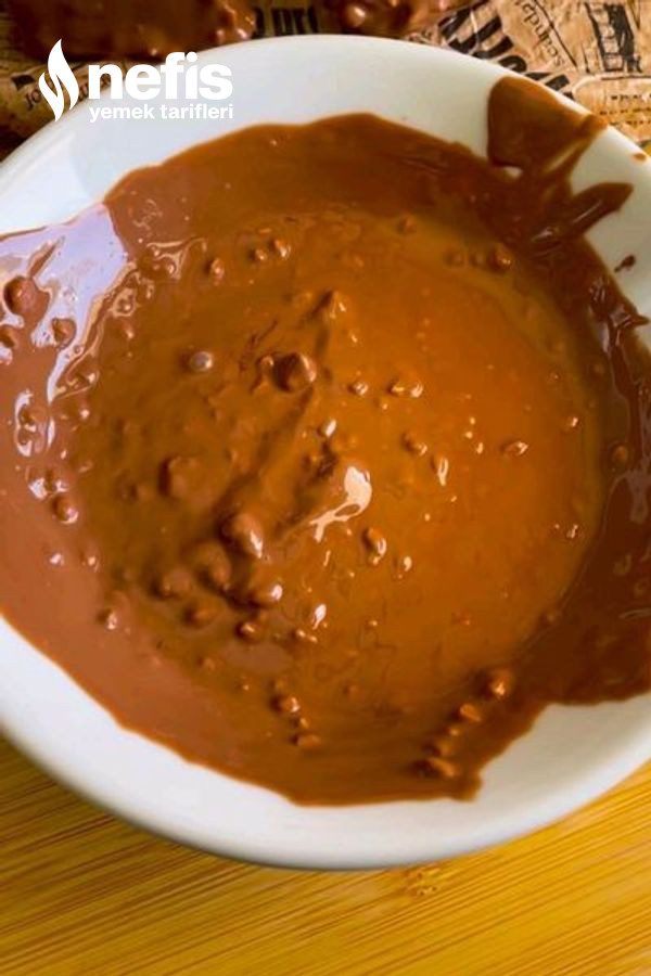 - Birleştirmek için öncelikle çikolatamızı benmari yordamı eritip içine göz kararı fındık kırığı ekleyip karıştıralım.
