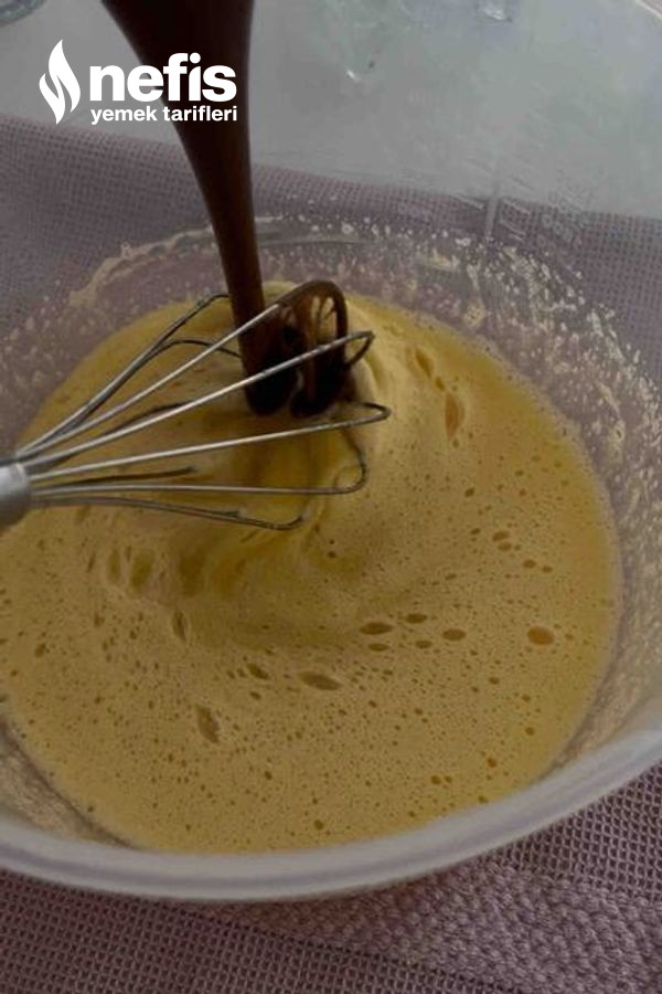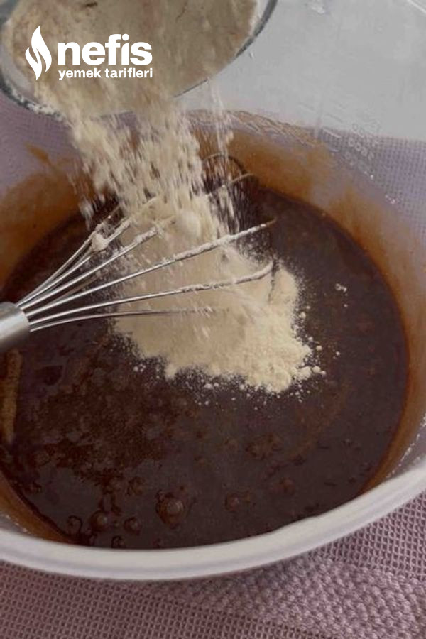4. Çikolatalı karışımı ve unu ekleyin. Çırpın.
