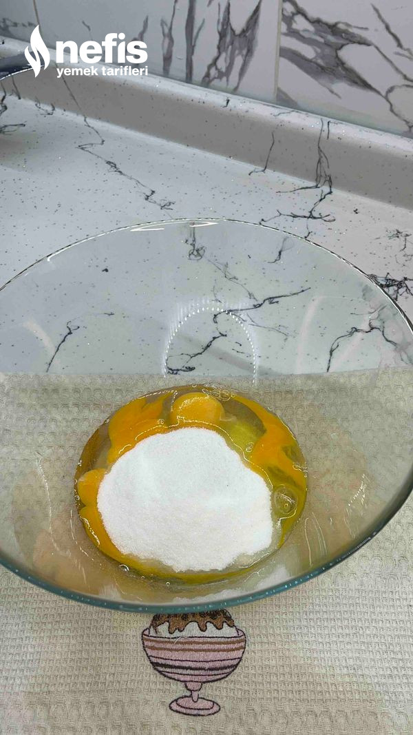 - Öncelikle kakaolu kek hamuru için şeker ve yumurtayı düzgünce çırpalım. (köpürünceye kadar )