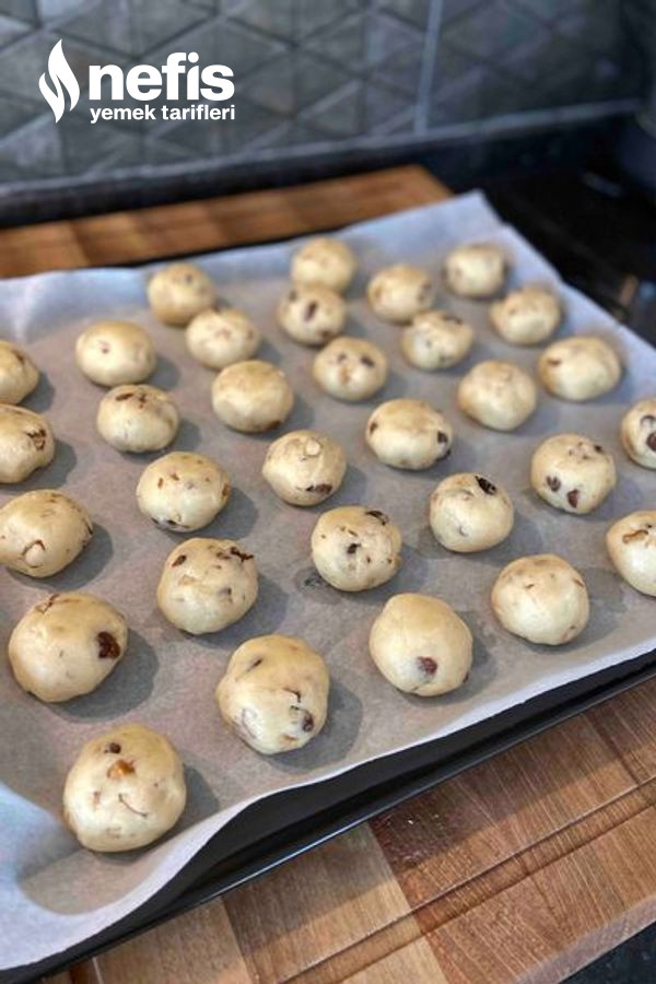 - Ceviz büyüklüğünde kesimler koparıp yuvarlayıp tepsiye dizelim.