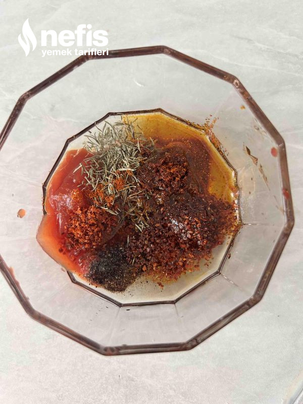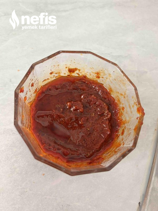 7. Sosun tamamını dökelim ve evvelden 10 dakika ısıtılmış 180 derece fırına tepsiyi sürelim 4-5 dakika kadar bekletip çıkaralım.