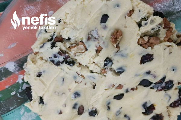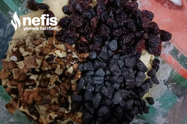 - Ardından ceviz damla çikolata turna yemişini ekleyip güzelce birbirine geçene kadar yoğurun.