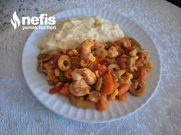 - 15 dakika kadar sonra mısırı, zeytini ve baharatları içine atıp suyunu çekecek halde pişiriyoruz. Ben yanına mısırlı bir patates püresi yaptım bu biçimde yemiştim daha öncede hakikaten çok yakışıyor. Deneyecek olanlara afiyet olsun 🙏🏻
