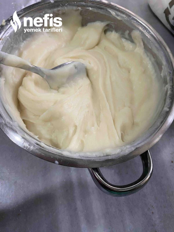 - Muhallebinin birinci sıcağı çıkınca üzerine yarım çay bardağı süt ve 1 poşet krem şanti koyalım pürüzsüz hale gelene kadar karıştıralım.
