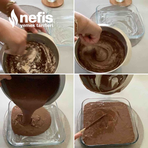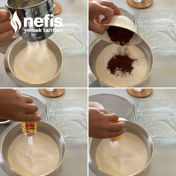 3. Hamuruma kakaoyu, unu, vanilya şekeri ve kabartma tozunu ek ederek hamurun o kabarık halinin sönmemesi için spatula ile birkaç defa çevirerek yedirdim.