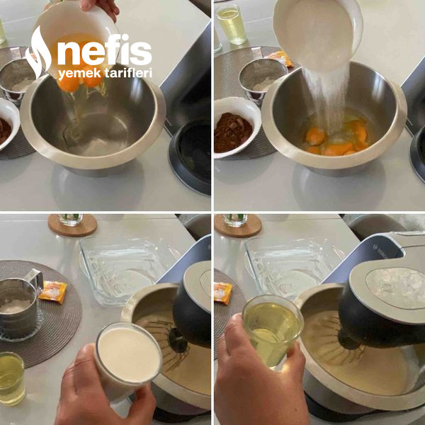 2. Ardından tüm sıvı materyalleri ekleyerek çırpmaya devam ettim.