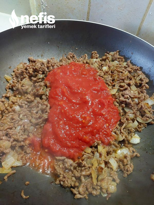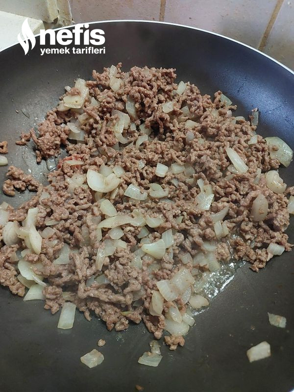 - İnce doğranmış soğan ve kıyma tıpkı anda yüksek anestezi tavaya alınır ve 3 kaşık zeytinyağı ile kavrulur. Baharatlar eklenir ve 1 modül tereyağ atılır.