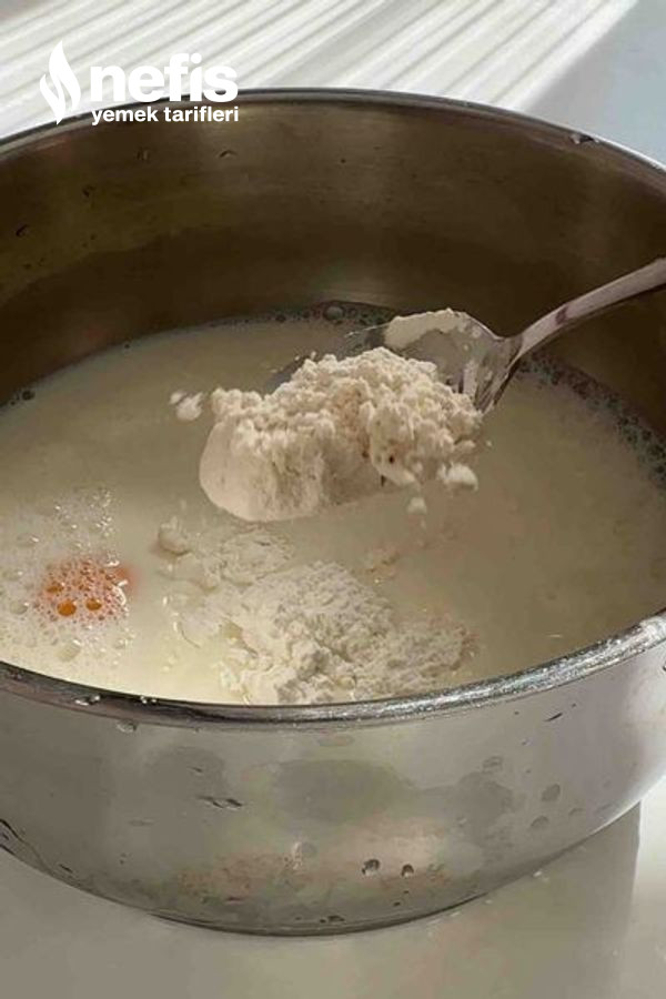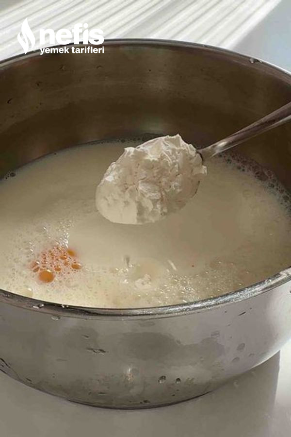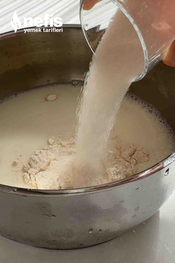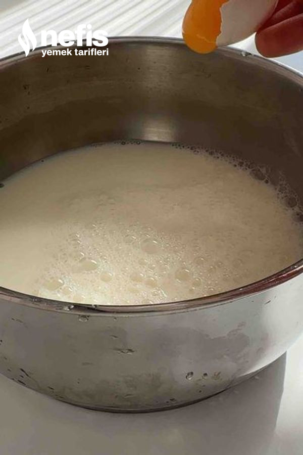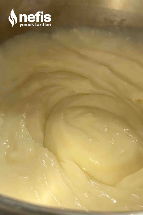 - Süt, şeker, nişasta, un, yumurta sarısını karıştırma kabına alıp karıştıralım ,ocağa alıp karıştıralım, göz göz olunca ocaktan alıp vanilya ve tereyağını ekleyip karıştıralım.