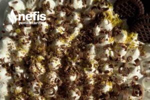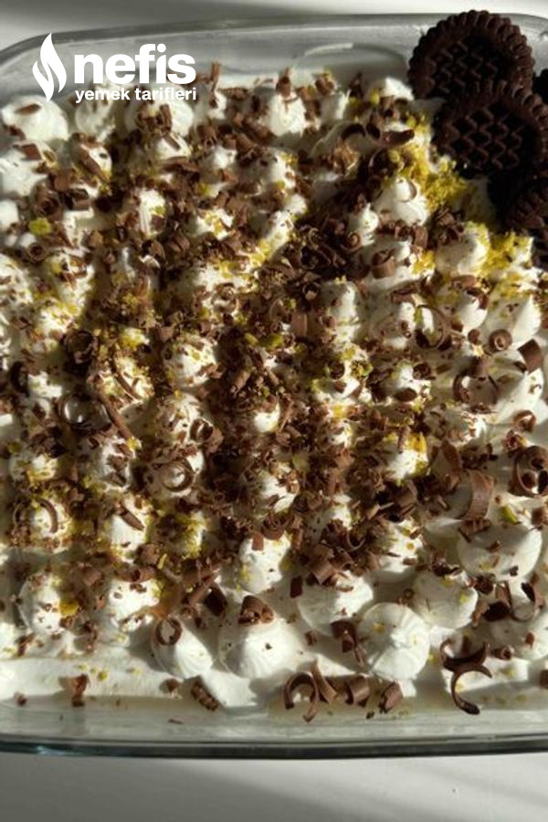 - Kremşanti ve kremayı çırpıp sıkma torbasına koyalım tatlının üstüne sıkalım ,en üstede tablet çikolata rendeleyip antep fıstığı serpiştirelim, 2 saat dinlendirdikten sonra servis yapalım.