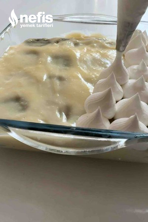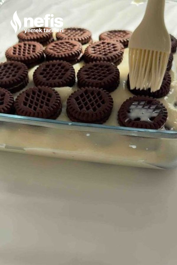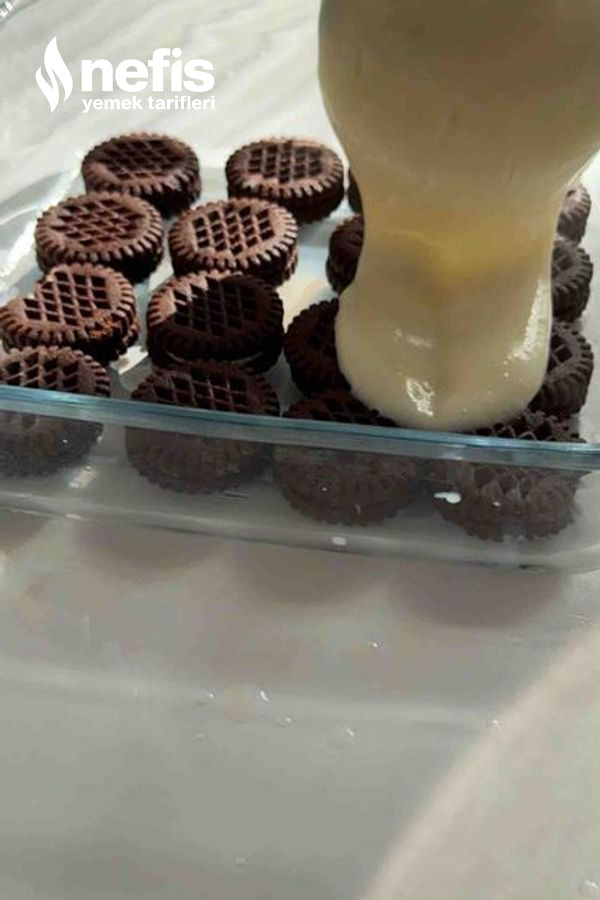 - Daha sonra tekrar bisküvileri süte batırıp yerleştirelim ve en üste de muhallebi dökelim,buzdolabında yarım saat bekletelim.