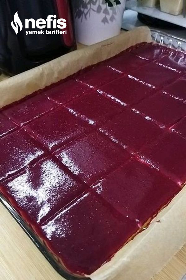 2. Sonra tabanına yağlı kağıt serilmiş büyük dikdörtgen borcama aktarıp bardak ile bastırın.
