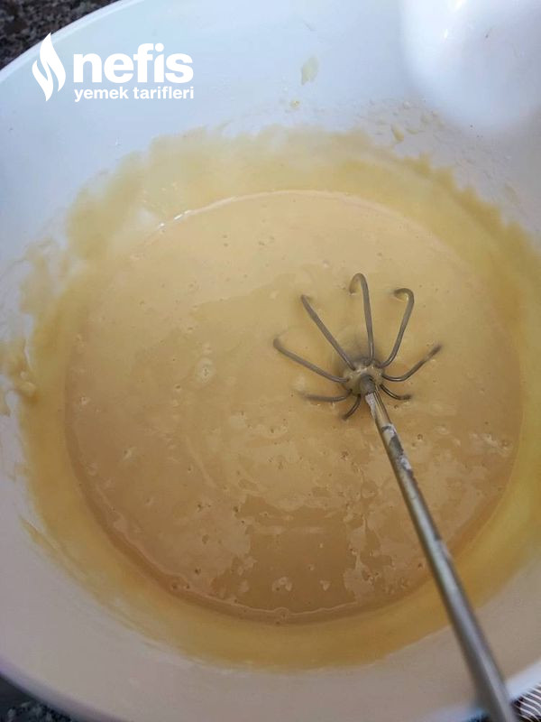 - Kekimizin hoş ve yumuşak olabilmesi için püf nokta gereçleri hoş çırpmaktır. Birinci olarak yumurta ve şekeri düzgünce köpük köpük olana kadar çırpıyoruz. Üstüne süt ve sıvı yağı ekleyip yeniden çırpıyoruz.