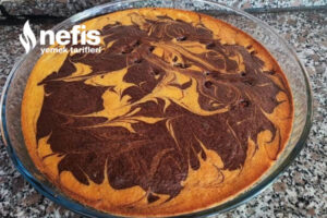 - Yağlanmış borcama birinci sade olanı güzelce dökün sonra kakaolu kısmı üstünde gezdirerek dökün. Kürdan ile üstünden geçin formlu olsun. Sonra ben bir kısmının üstüne kuru üzüm koydum sizde çikolata, üzüm koyabilirsiniz.