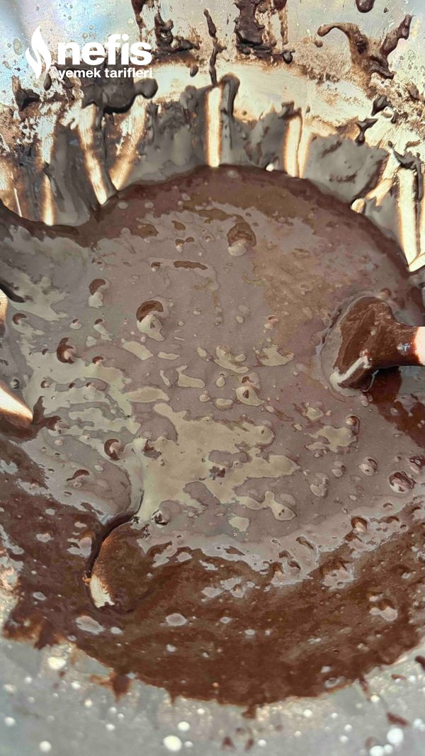 - Yumurta, şeker ve tuzu bir kaba ekleyin, mikserle yeterlice çırpın. Tereyağı ve sütü ekleyip biraz daha çırpın. Un, kabartma tozu ve kakao eleyerek ekleyip karıştırın.