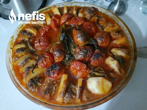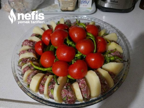 - Yuvarlak borcam tepsiye bir patates bir köfte halinde dizelim.