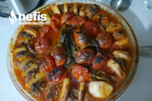 - Borçların ortasına sarımsakları koyalım ,biberleri dizelim ve en son küçük domatesleri ikiye bölüp biberleri üzerine dizelim.