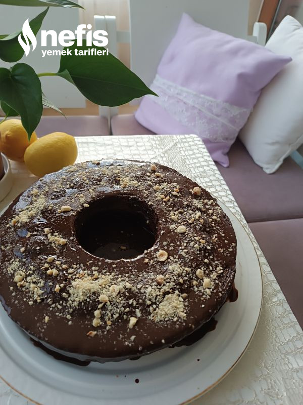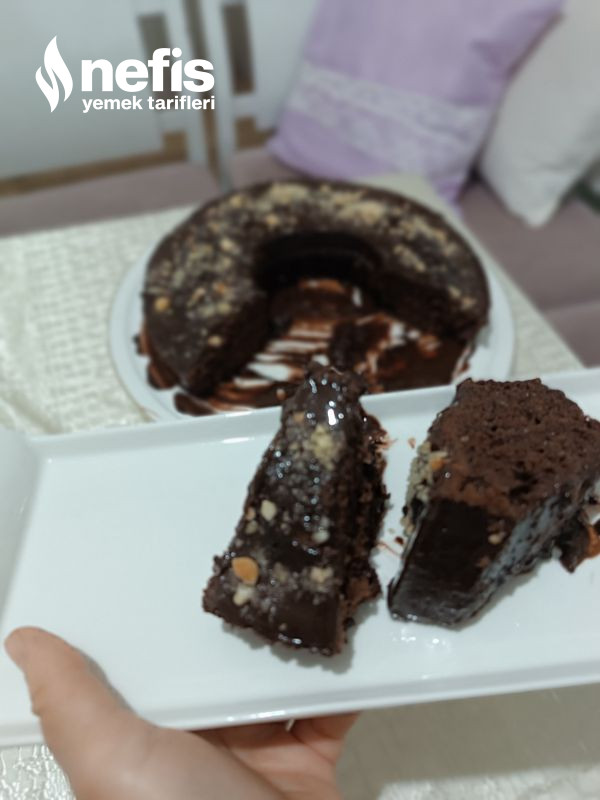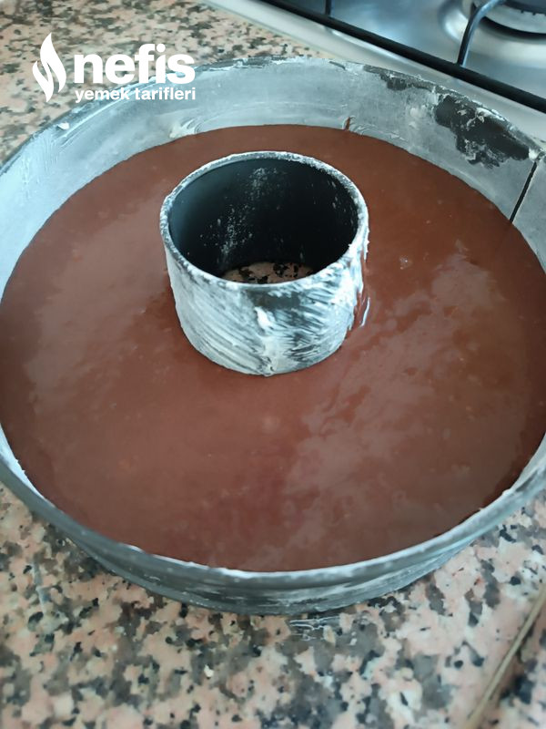 4. Pişen keki 10 dakika bekletin sonra sosun yarısını ekleyin 15 dakika çekmesini bekleyin.