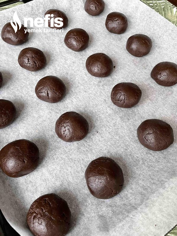 - Hamurdan ceviz büyüklüğünde modüller alıp yuvarlayıp tepsiye yerleştirelim .