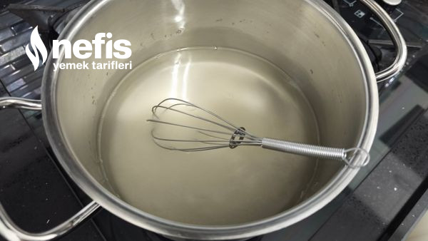 2. Şerbeti hazırlayalım 5 dakikada kaynatalım iki damla limon suyu sıkıp soğumaya bırakalım.