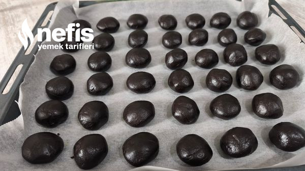 3. Hamurları ceviz büyüklüğünden modüllere bölüp yuvarlayın ve tepsiye dizelim.