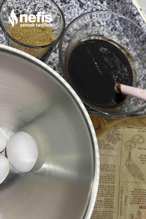 1. Çikolata ve tereyağ benmari yordamı eritelim. 📌 yumurta ve şekeri şeker eriyene kadar düzgünce çırpalım. Daha sonra kuru gereçleri un kakao ve vanilyayı ekleyip tekrar çırpalım.