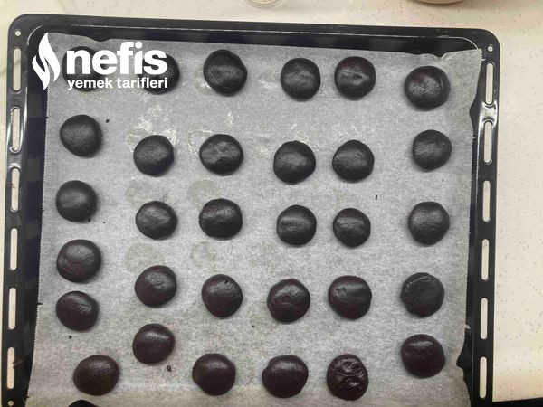 3. İstediğiniz büyüklükte yuvarlak haller yapıp, yağlı kağıt serdiğimiz tepsimize yerleştirelim.