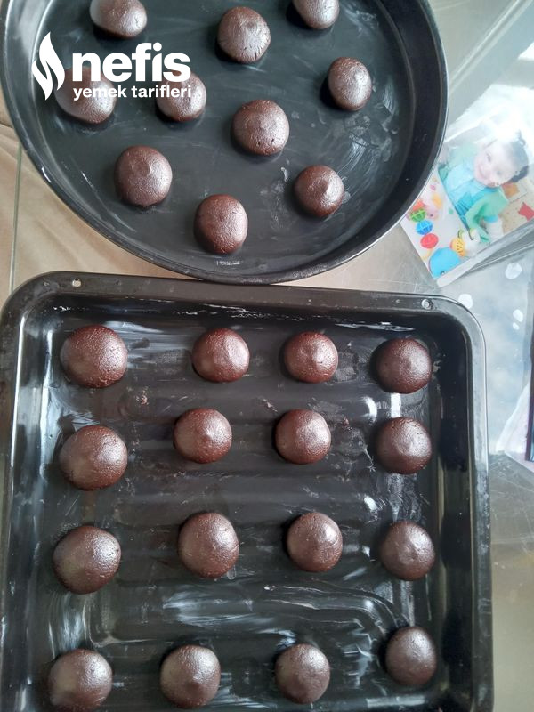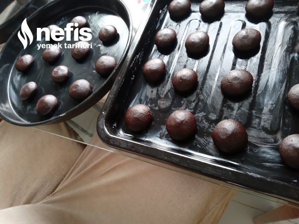 - Hamurdan ceviz büyüklüğünde kesimler alarak yuvarlayalım ve tepsiye dizelim.