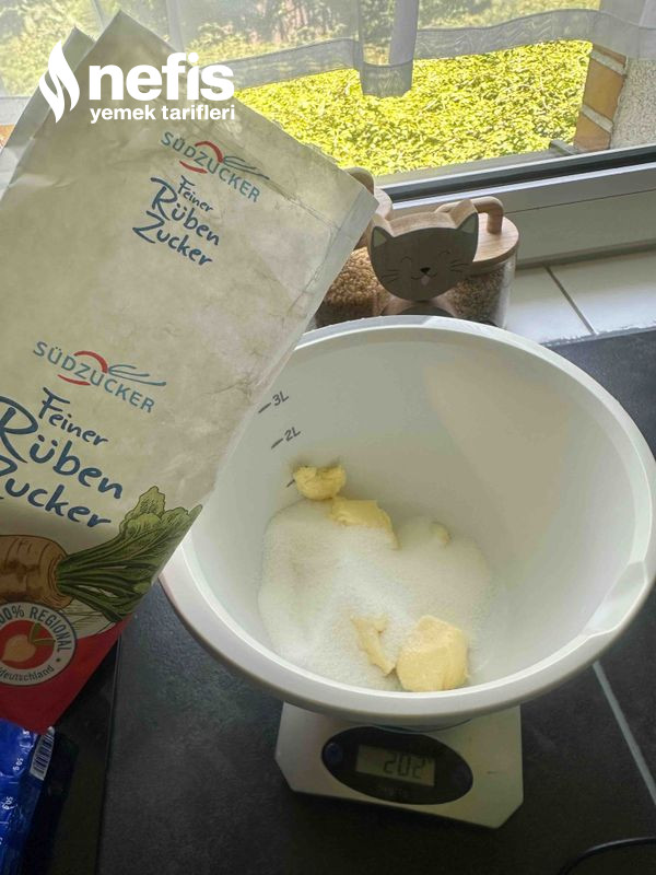10. Yumuşamış tereyağını toz şeker ve vanille şekeriyle yaklaşık 2 dakika çırpın.