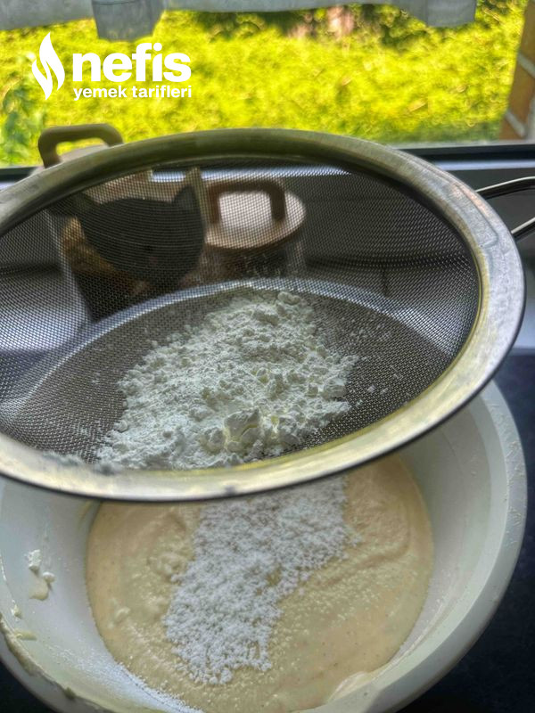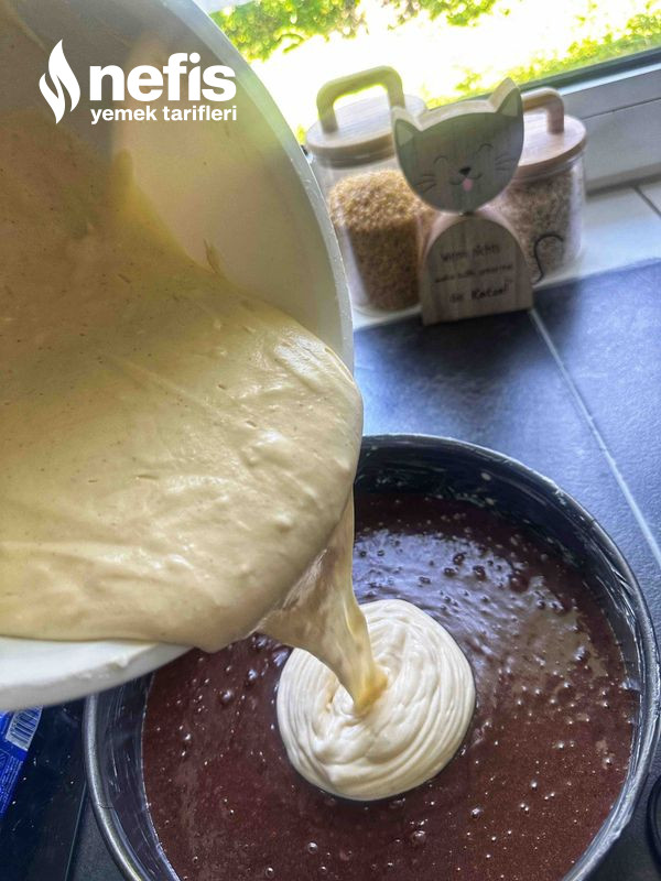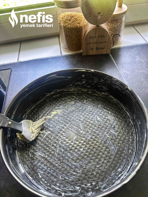 9. Hazırladığınız hamuru kalıba dökün ve spatula ile düzleştirin. Kalıbı bir kenara alın.