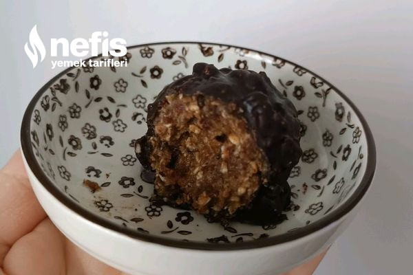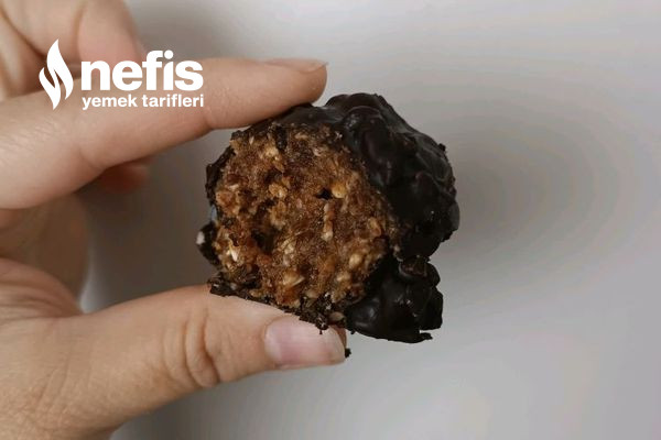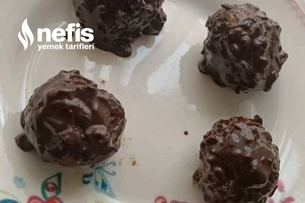 - Benmari yordamı erittiğimiz bitter çikolataya kırmış olduğumuz fındıktan bir yemek kaşığı ekleyip yaptığımız browni toplarını batırıyoruz.