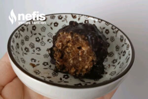 - Benmari yordamı erittiğimiz bitter çikolataya kırmış olduğumuz fındıktan bir yemek kaşığı ekleyip yaptığımız browni toplarını batırıyoruz.