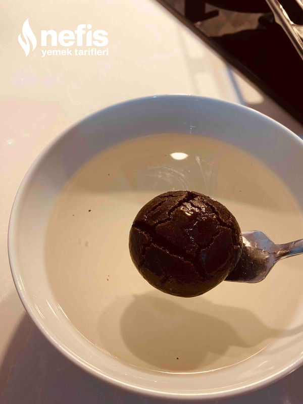 6. Pişen kurabiyelerimizi fırından alıp 1/2 dakika bekleyip ,ilk sıcağını attıktan sonra evvelce hazırlamış olduğumuz soğuyan şerbetimizin içine bir çatal yardımı ile kurabiyelerimizi koyup, öbür bir borcama aktaralım.
