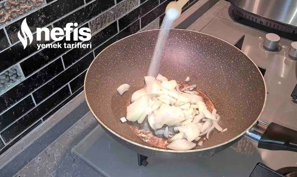 - Tavada zeytinyağını kızdırın, soğanları ekleyin.