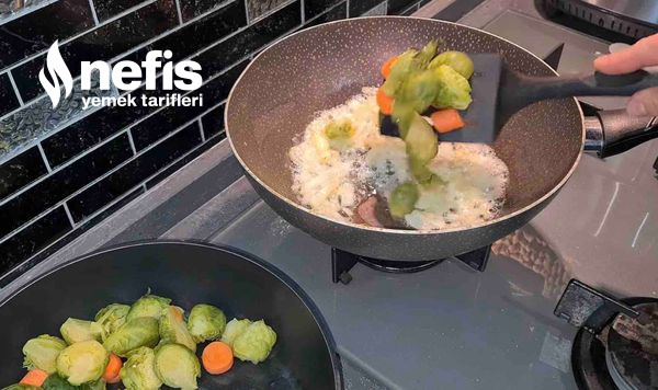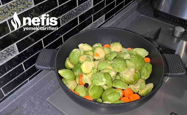 - Brüksel lahanası ve havuçları çok az suyla, yumuşayacak formda haşlayın.