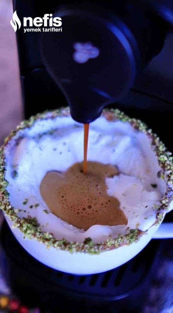 - Fincanın içine dondurmayı koyun ,kaşıkla bastırarak kenarlara yayın, ortada oluşan boşluğa espresso ekleyin.