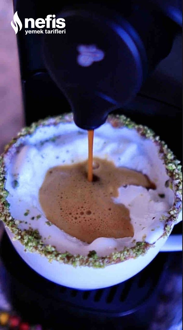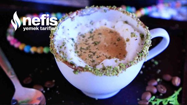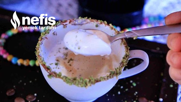 - Sürülebilir çikolatayı fincanın ağız kısmına sürün, antep fıstığına batırın.
