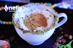 - Sürülebilir çikolatayı fincanın ağız kısmına sürün, antep fıstığına batırın.