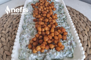 - Daha sonra semizotlarını doğrayın karıştırma kabına alın, üzerine çırpılmış yoğurt ekleyip, karıştırın. Servis tabağına alın, üzerine nohutları ekleyin. Afiyet olsun.