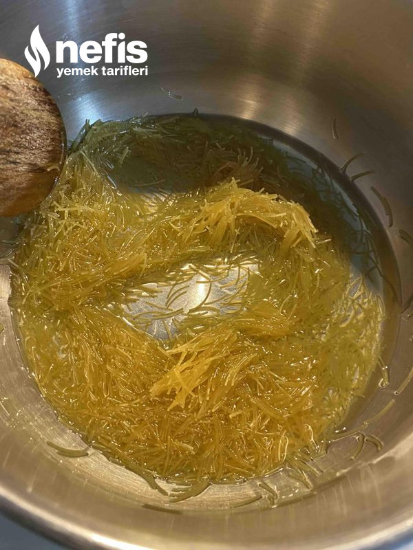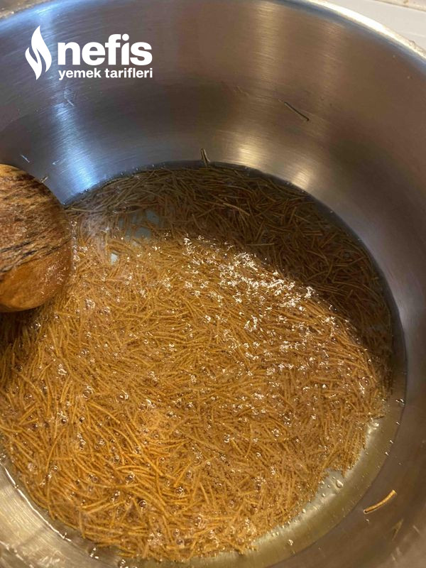 - Tencerenin içerisine sıvı yağ ve şehriyeyi koyup rengi yoğunlaşana kadar kavuralım.