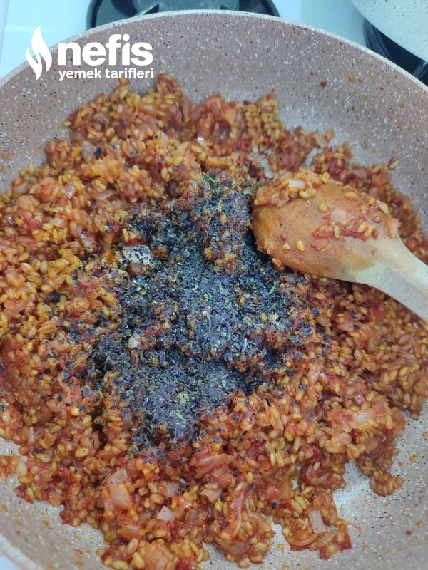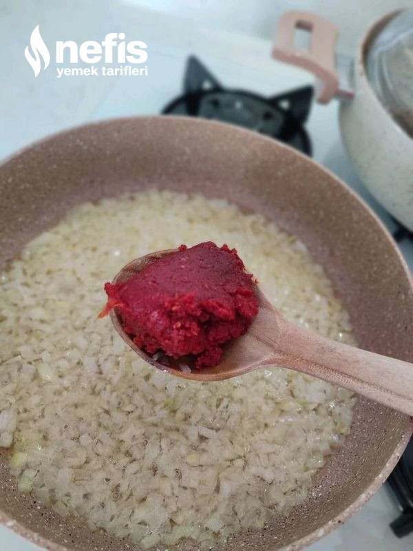 2. Soğanları biraz kavurduktan sonra üzerine salçayı ekleyip kavurmaya devam ediyoruz bulguru da ekleyip kavuruyoruz .