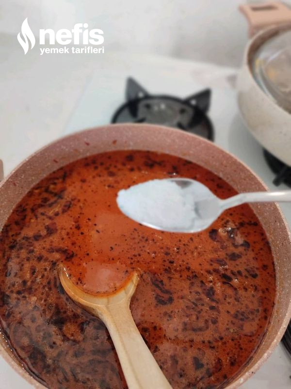 4. Kaynadıktan sonra orta ateşe alıp suyunu çekmesini bekliyoruz göz göz olup suyunu çektikten sonra ocağı kapatıp servis yapabilirsiniz. (ben konut salçası kullandığım için yarım tatlı kaşığı tuz ekledim).